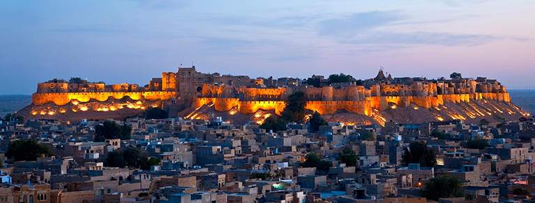 After sightseeing we drive to Jaisalmer, founded in the year 1156 by Bhatti Rajput ruler Rawal Jaisal. Often described as Golden City & rising from the heart of the Thar Desert like a golden mirage the commanding Fort etched in yellow sandstone, dominates the amber-hued city with its entire awesome splendour. Because of its strategic location it was an important ancient trading centre & camel caravans laden with precious spices & silk crossed the territory en-route India, Sindh, Arabia & Europe. The merchants of the 19thcentury built Havelis (Mansions) that are exquisitely carved from golden-yellow sandstone & are still in a beautiful condition. The life within the Fortified town conjures up images of medieval majesty visible in its narrow lanes strewn with magnificent palace, havelis, temples, & of course skilled artisans & ubiquitous camels.