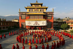 After breakfast, transfer to the airport for a flight back to Kathmandu. Upon arrival, proceed for a sightseeing tour of two of Nepal’s most revered religious sites: