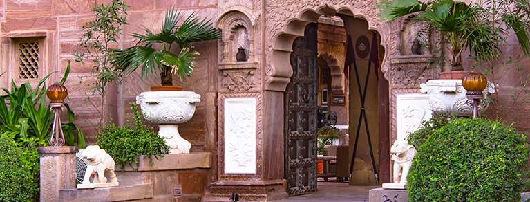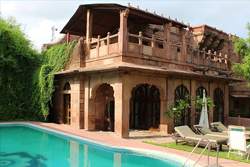 The entire haveli is built out of the famous red sandstone of Jodhpur and with its ornately carved lattice work friezes and intricate ?jharokas? or balconies it exquisitely captures the romance and grace of yesteryear.