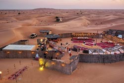 Embark on an enchanting Arabian voyage, deep into the heart of the spellbinding desert, leaving the hustle and bustle of city life behind. Feel the adrenaline rush kicking as you ride along the mesmerizing desert dunes. Pause occasionally during your 30-minute adventure to capture remarkable photos of splendid sunset views in the heart of the desert. Get welcomed in the beautiful Bedouin desert camp with a traditional Arabic coffee and dates, before getting comfortable at your preferred seats. The action does not end here. You could choose to take off on a quad bike ride, weaving across magnificent dunes. Sit back, relax and enjoy a sumptuous dinner buffet spread including Arabic delicacies and barbeque items, along with unlimited thirst quenchers. Also, there will be an Arabic pipe called shisha. Adding more excitement to an already fun-packed are dazzling live performances including spectacular belly dancing and a Tanoura folk dance. Return back to your hotel.
