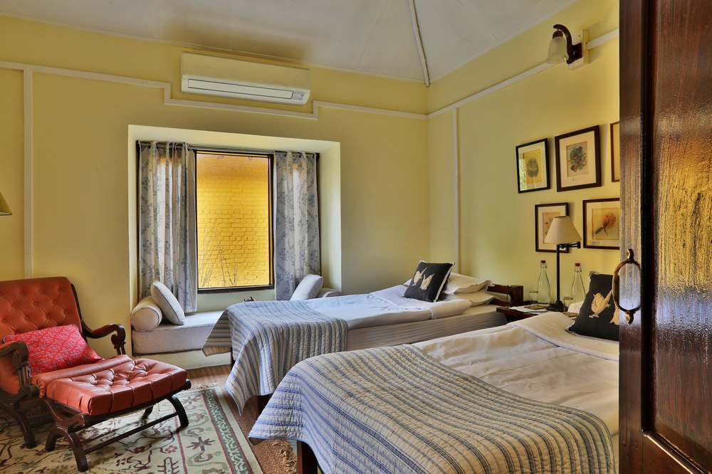 Jungle Cottage - The Jungle Cottage borrows from the construction style of our neighboring Van Gujjar community, with high sloping thatched roofs, and from the forest bungalows of the Raj, with deep wrap-around verandahs. Our interior rooms?living, bedroom, dressing and bath-offer Raj-inspired living, its walls adorned with wildlife plates and lithographs. Luxuriant fabrics and safari camp style furnishings create an unforgettable ambience, with keen attention paid to details.