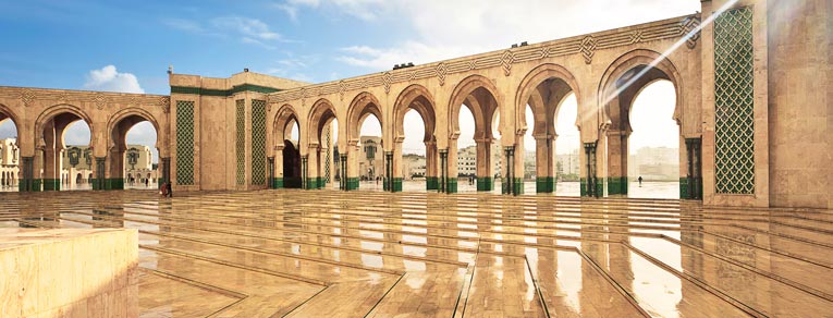 Arrive in Casablanca, Morocco's largest city. After clearing customs, meet your guide and transfer to your hotel. Spend the afternoon visiting the iconic Hassan II Mosque, one of the largest mosques in the world, and enjoy views of the Atlantic Ocean. Explore the surrounding area, and in the evening, consider dinner at a local restaurant (at your leisure).